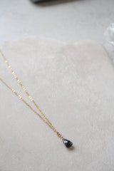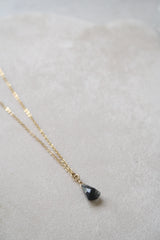 שרשרת גולדפילד עדינה עם תליון מאבן קוורץ שחורה וטבעית. העיצוב נקי ומנימלסיטי