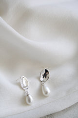 עגילי אמורפי כסף ופנינה