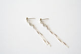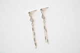 עגילי כסף ארוכים וצמודים לאוזן עם מעויינים משובצים בזירקונים קטנים ושרשראות כסף עדינות