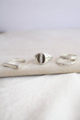 טבעת כסף מרובעת ומגניבה מכסף 925 עם שיבוץ של אבן זירקון שקופה בקצה.