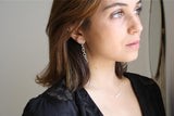 עגילי לולאות כסף ארוכים וצמודים לאוזן שתוכלי לשלב עם כל אווטפיט. תוספת של אדג׳ קליל ומגניב ללוק שלך בין אם לשעות הבוקר למראה אלגנטי ומוקפד ולבילוי בערב.