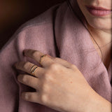 טבעת זהב מגניבה בעיצוב גיאומטרי עם עם שפיץ קטן מקדימה.