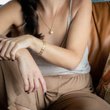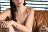 כל חלקי הצמיד עשויים פליז בציפוי זהב 14 קראט.