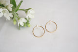 עגילי חישוק: 22 מ״מ , עשויים כסף 925 מצופה זהב 14 קראט ופנינה טבעית