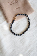 צמיד פנינים טבעיות ממים מתוקים בגווני כחול - שחור, דרמטי אלגנטי ומיוחד.