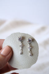 עגילי זירקונים מושלמים ונוצצים מכסף 925 צמודים לאוזן ומשולבים זירקונים עגולים ופרח זירקונים יפיפה במרכז
