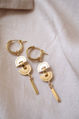 העגילים ארוכים וקלי משקל ועשויים חישוקי זהב עם פתיחה נוחה וסגירה בטיחותית