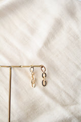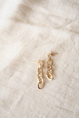עגילי שרשרת גורמט צ׳אנקים מוזהבים וצמודים לאוזן עם נוכחות מרשימה וטאצ׳ אלגנטי.