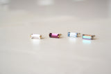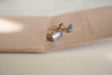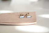 עגילי מלבן צמודים בעיצוב מנימליסטי וניצוץ אלגנטי משובצים קריסטל סברובסקי בצבע תכלת קריר ומלא ברק.