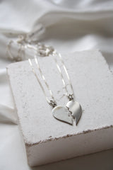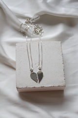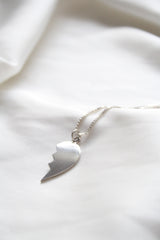 השרשרת מגיעה עם תליון חצי לב אחד עשוי עבודת יד על שרשרת כסף מרשימה וארוכה
