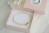 שרשרת פנינים יפייפיה, קלאסית ועדינה עם נוכחות מרשימה ואלגנטית עשויה פנינים טבעיות ממים מתוקים המושחלות על חוט מיוחד וחזק בשזירה מקצועית עם קשרים בין הפנינים וסוגר גולדפילד בקצה.