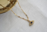 שרשרת עין מגולדפילד עדינה עם חוליות אובליות ותליון קמע עין מיוחד משובץ זירקונים שקופים וזירקון כחול במרכז.