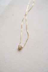 שרשרת דקה עדינה וקלאסית שבמרכזה חרוז עגול משובץ זירקון שנע עליה בחופשיות