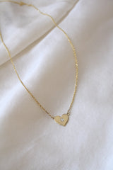 שרשרת לב עדינה מזהב 14 קראט עם שיבוץ יהלום קטן