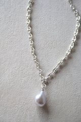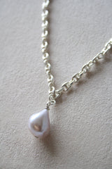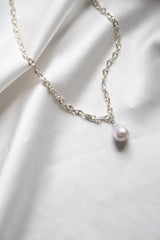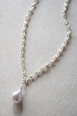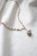 שרשרת כסף יפייפיה, מרשימה ואלגנטית עשויה חוליות כסף אובליות ופנינת בארוק טבעית בגוונים סגלגלים ורודים.