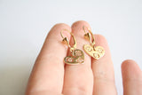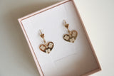 העגילים המקסימים האלה עשויים גולפילד עם קישוט לב ותליון לב תחרה מצופה זהב 14קראט נופל מהם.
