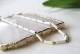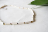 חרוזי אבן היוליט לבנים וחרוזי גולדפילד בינהם יוצרים שילוב אתני ואלגנטי יחדיו.
