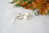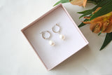 עגילי חישוק ופנינה לבנה